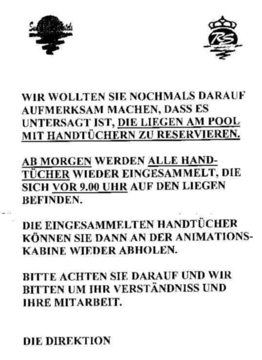 Die Aufforderung der Hoteldirektion, den Tag am Pool stehend zu